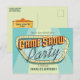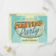 Carte postale d'invitation à une soirée de jeu télévisé avec un panneau typographique "Soirée de jeu télévisé". Ces conceptions comprennent des éléments de bleu, jaune, rouge et orange, un podium de jeu télévisé, un panneau lumineux et des éléments inspirés des jeux télévisés rétro. Les produits comprennent un modèle pour une personnalisation personnelle.