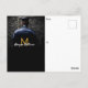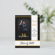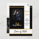 Ajoutez vos photos et modifiez le texte à cette invitation de graduation graphique en noir blanc et or. Concevez l'avant et l'arrière de la carte.