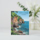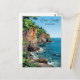 A beautiful postcard with an illustration of Door County Wisconsin on a nice summer day. The illustration shows the Door County canyons, cliffs and Lake Michigan's pretty blue water and lush green foliage growing on top the ledges.