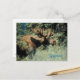 Carte postale d'orignal du Québec. L'orignal émergeant des arbres.