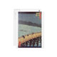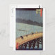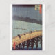 Cette impression couleur japonaise a été créée par Ichiyusai Hiroshige au XIXe siècle. Le nom complet de l'impression est : "Douche du soir à Atake et le Grand Pont". Cette impression japonaise est tirée de la célèbre série : Cent Vues Célèbres d'Edo" (Meisho Yedo Hiakkei). On y voit quelques ouvriers japonais traverser un grand pont, alors qu'une tempête fait rage, et qu'il pleut beaucoup. Ils se couvrent de casquettes de paille, de manteaux et peut-être de parapluies. Dans l'arrière - plan, on voit aussi un marin japonais sur un canot qui traverse la rivière. Le ciel est assez sombre à cause de la tempête, et il fait trop sombre pour voir les forêts derrière. L'artiste a également signé cette oeuvre en caractères kanji et en hiragana (écriture japonaise).