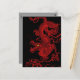 Un dragon chinois rouge sang aux yeux jaunes contre un arrière - plan noir.