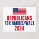 Carte postale républicaine pour Harris Walz avec le drapeau américain en rouge, blanc et bleu. Les conservateurs qui votent pour Kamala Harris et Tim Walz pour le poste de président et vice-président aux élections de 2024.
