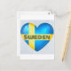 Drapeau national suédois en forme de coeur avec superposition de texte de style rétro