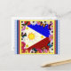 Ce dessin représente le drapeau philippin entouré de belles fleurs et de papillons.