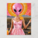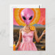Carte Postale Drôle Alien dame en rose