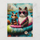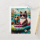 Carte Postale Drôle Chat et écureuil flottant voyage
