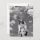 Chat amusant volant avec un tas de ballons sur une carte postale - n'hésitez pas à customiser cet article !