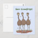 Salutations amusantes de l'arrière-pays australien avec 3 emus heureux dessinés dans le style de dessin animé mignon. Dis à G'day maté !