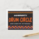 Carte postale de l'événement Drum Circle avec des bordures de motifs tribaux et un design coloré sur le noir. Modifiez les lignes de texte blanches avec vos informations locales.