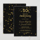 Célébrez 50 années dorées avec cette élégante carte d'invitation d'anniversaire noire et or. Avec des cœurs dorés scintillants et une typographie élégante, elle est parfaite pour des célébrations d'anniversaire de mariage formelles ou amusantes et des renouvellements de vœux.