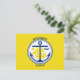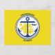 Carte postale avec la ville d'Anchorage, Alaska; drapeau jaune avec un sceau blanc avec une illustration d'un navire bleu et une ancre