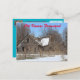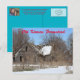Une ferme du Kansas Country avec de la neige sur elle qui est lumineuse et colorée avec des arbres, et une clôture qui est sur une carte POST.