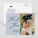 Dusty Blue Elegant Script Minimaliste Photo Graduation Merci Postcard. Donnez Wow 'Merci' à votre famille et amis avec cette belle carte de remerciements. Tous les textes sont pré-arrangés pour que vous personnalisiez facilement et rapidement avec vos propres mots.