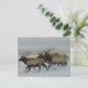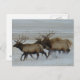 Carte postale Bull Elk. Les taureaux de wapiti traversent la neige dans les Prairies de l'Alberta, les wapitis peuvent se déplacer très rapidement et parcourir de nombreux kilomètres en peu de temps.