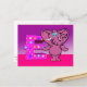 Joli dessin animé Elephant avec alphabet lettre E dans les tons rose et violet, carte postale.