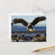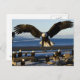 Cette carte postale d'aigle a un aigle volant au-dessus de la côte océanique avec d'autres aigle sur la croissance