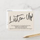 Si vous préférez simple et décontracté, ceci pourrait être la carte de faire-part pour vous. L'avant comporte un en-tête graphique que j'ai conçu en utilisant une police d'écriture moderne et décontractée, qui dit "Écoute !". En bas, il y a un message avec un ton de conversation que vous pouvez modifier, qui déclare les nouvelles sur la nécessité de changer votre date de mariage. Utilisez les champs modèles pour ajouter vos données personnelles et modifier n'importe quel de mes projets de texte pour répondre à vos besoins et à votre situation. L'arrière - plan peut être changé en n'importe quelle couleur.