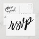 Dans une écriture décontractée moderne, un graphique en gras représentant "rsvp" apparaît au centre de l'avant. Sur le dos, la même police unique a été utilisée pour créer des graphiques qui lisent "veuillez répondre", "m" et "livrez gentiment à :". Tous les autres textes sont modifiables. Utilisez les champs modèle pour personnaliser autant que vous le souhaitez. L'arrière - plan peut être changé en n'importe quelle couleur. // 100 //