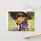 Carte postale Halloween éffrayante en lettres brosse photo Halloween. Envoyez les salutations d'Halloween à votre famille et à vos amis avec cette carte postale personnalisable. Il comprend des lettres de brosse, des illustrations de chauve-souris et des points blancs et oranges motif. Cette carte d'Halloween ludique et moderne est disponible en d'autres couleurs.