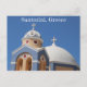 Un toit d'église à Santorin, avec un beau ciel bleu.