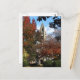 Cette carte postale présente une charmante église en pierre ancienne à Ithaca, New York. Elle est presque cachée par les érables dans les glorieuses couleurs automnales de rouge et d'orange. Le ciel bleu et les nuages blancs complètent cette scène d'automne.