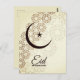 Carte de vœux Eid Moubarak conçue avec une lune d'Eid marron et des ornements islamiques Vous pouvez personnaliser cette carte avec vos vœux d'Eid et l'envoyer à qui vous aime .