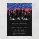 Invitation vos amis et votre famille pour célébrer votre journée spéciale avec ces gouttes de parties scintillant noir rouge et bleu enregistrer la date des cartes faire-part de mariage patriotiques. Customisez avec vos noms, et toutes vos informations de mariage. Cette collection de mariages à thème du drapeau américain sera un favori de tous les militaires, vétérans et forces armées. Visitez notre collection de mariages patriotiques pour les invitations à un mariage blanc et bleu rouge, les faveurs de mariage, les fournitures de fête. DROIT D'AUTEUR © 2020 Judy Burrows, Black Dog Art - Tous droits réservés. Elégant Black Red Blue Parties scintillant Drives Enregistrer La Date Carte Postale