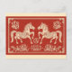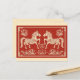 Inspired by the intricate artistry of Chinese paper-cutting, this design features two majestic, mirrored horses adorned with delicate floral patterns and geometric details. Set against a rich, textured red background, the gold-toned illustrations symbolize doubled prosperity and strength for the coming year.