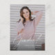 Cette carte postale de remise de diplômes et d'invitation à la fête de remise de diplômes est la meilleure façon de célébrer votre diplômé. Avec un script moderne et élégant "gradué" en blanc, ce design dispose également de la place pour la personnalisation, y compris le nom, l'école et l'année sur le front de la photo verticale. L'arrière offre une place pour le texte d'invitation de la fête de remise des diplômes. Ce faire-part de diplôme élégant fonctionne bien pour un diplômé du secondaire ou un diplômé de l'université. Autres styles disponibles dans la collection.