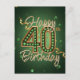 Carte Postale Élégant Emerald Green et Gold 40e anniversaire