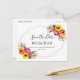 Ce magnifique design élégant présente des bouquets floraux éclatants aux tons coralliens, orange, rose, rouge, jaune et violet, ainsi qu'un cadre géométrique en cuivre tendance. Le texte personnalisable apparaît dans le script populaire et la typographie serif. Vous pouvez personnaliser cette option pour enregistrer la carte postale de date pour votre propre mariage en modifiant le texte dans le modèle.