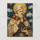 Envoyez un message de grâce, de sagesse ou de révérence avec cette superbe carte postale en vitrail. Dotée d'une illustration très détaillée d'un pape ou d'une figure sainte en robes cérémonielles, cette image s'inspire de l'art traditionnel du vitrail de la cathédrale. De riches teintes de bleu, de crème et d'or sont accentuées par des lignes complexes de style mosaïque et des motifs délicats de nuages, créant une esthétique intemporelle et spirituelle. Le design présente la figure avec un halo doré, une expression calme et un livre sacré ouvert, symbolisant la paix, la réflexion et la dévotion. Parfait pour les fêtes religieuses, confirmations, baptêmes, notes de sympathie ou encouragement spirituel. Que vous soyez amateur d'art sacré, d'architecture gothique ou d'iconographie européenne classique, cette carte postale ajoute élégance et profondeur à toute collection.