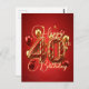 Cette carte d'anniversaire personnalisable pour les 40 ans est votre billet pour faire tourner les têtes et les cœurs. Audacieuse et captivante, la conception présente le nombre étincelant « 40 » enveloppé de bandes rouges et dorées scintillantes, symbolisant la richesse et la vibrance de ce chapitre remarquable de la vie. Des ballons de fête flottent en harmonie, ajoutant une touche d'excitation prête à faire la fête.