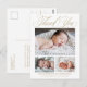 Carte Postale Élégant Script Doré 3 Photo Bébé Merci