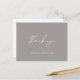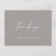 Simple et moderne Calligraphie Script Merci Postcard en gris élégant à envoyer après votre mariage. Customisez-le avec vos propres noms sur le devant et le message au verso ou supprimez le texte au verso et ajoutez votre note manuscrite.