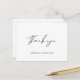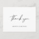 Simple et moderne Calligraphie Script Merci Carte postale en noir et blanc à envoyer après votre mariage. Customisez-le avec vos propres noms sur le devant et le message au verso ou supprimez le texte au verso et ajoutez votre note manuscrite.