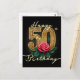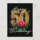 Carte Postale Élégante Rose en Fleur et 50e Anniversaire Luxueux