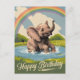 Mignon bébé éléphant avec arc-en-ciel souhaitant joyeux anniversaire. Une carte postale vintage pour enfants de tout âge.