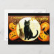 Une charmante carte d'Halloween vintage avec un chat noir et quatre Jack O'Lanterns, peinte par l'illustratrice et artiste commerciale américaine Ellen Hattie Clapsaddle.