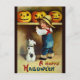 Une charmante carte d'Halloween vintage avec un garçon et son chien qui s'émerveillent à Jack O'Lanterns, peinte par l'illustratrice et artiste commerciale américaine Ellen Hattie Clapsaddle.
