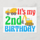 Invitation pour un enfant qui aime les voitures et les camions pour son 2ème anniversaire avec un engin de construction cool. Design de pelleteuse et de camion à benne pour un enfant qui aime les véhicules. Utilisez ces cartes pour inviter d'autres enfants à une fête pour un enfant de deux ans.