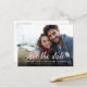 Annoncez votre date de mariage à votre famille et à vos amis avec l'élégante carte postale photo. Le texte de script tendance au-dessus de la photo est une touche moderne. L'arrière-plan propose du texte personnalisé pour vous permettre d'ajouter plus de détails mariages.
