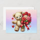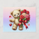 Une Carte Postale Colorée Accueillant Design Avec Ours Teddy Et Bouquet De Rouge, Et Roses Roses Roses Roses Roses Liées Avec Un Bow Pour La Journée Valentines