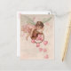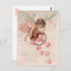 Dans cette image vintage, un mignon petit ange aux cheveux foncés avec de belles ailes grandes et translucides vole avec un panier et renverse les coeurs roses du ciel. Elle vous envoie de l'amour !