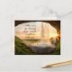 La carte postale des Écritures Inspirationnelles représente une belle scène à travers une caverne avec le soleil brillant sur une cascade. Il contient une partie de la Bible Verse Ésaïe 43:2, "Quand vous passerez dans les eaux profondes, je serai avec vous."