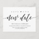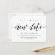 Il s'agit de la conception esthétique moderne thème, en fonte noire, invitation de mariage Rescheduled (reporté / report) carte postale (Enregistrer notre nouvelle date). C'est la façon parfaite et élégante de faire de l'invitation reprogrammer faire-part à vos amis et votre famille.