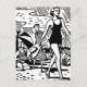 Images d'été rétro ! un graphique noir et blanc d'une jolie scène de plage rétro, montrant des gens en maillots de bain à la mode