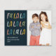 Envoyez ce magnifique accueil carte photo de vacances à vos amis et votre famille. Fa la la à la main police écrite en aquarelle tons pastel sur un arrière - plan bleu foncé