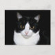 Carte postale de visage de chat noir et blanc